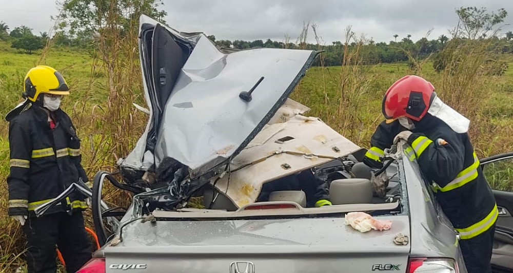 O condutor do veículo morreu no local e ficou com o corpo preso às ferragens. Os militares tiveram que usar equipamentos específicos para o desencarceramento.