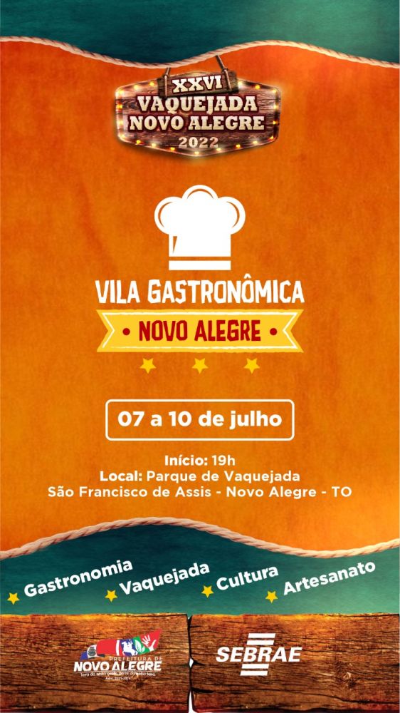 O Sebrae, em parceria com a Prefeitura Municipal de Novo Alegre, realiza a 1° Feira Gastronômica do município durante a XXVI Festa da Vaquejada entre os dias 7 e 10 de julho no Parque de Exposições São Francisco de Assis. A iniciativa, que tem como objetivo fomentar o turismo e valorizar a culinária local, contará com aproximadamente 20 expositores do ramo alimentício.